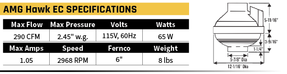 Introducing the AMG Hawk ECS model - Our AMG Hawk EC Radon Fan with an integral speed controller included. The AMG Hawk ECS features a potentiometer inside the terminal box, providing infinite adjustability. Set the fan speed precisely where the system needs it with a simple turn of the knob - ideal for achieving optimal performance of your ASD radon mitigation system, minimizing system noise and power consumption.